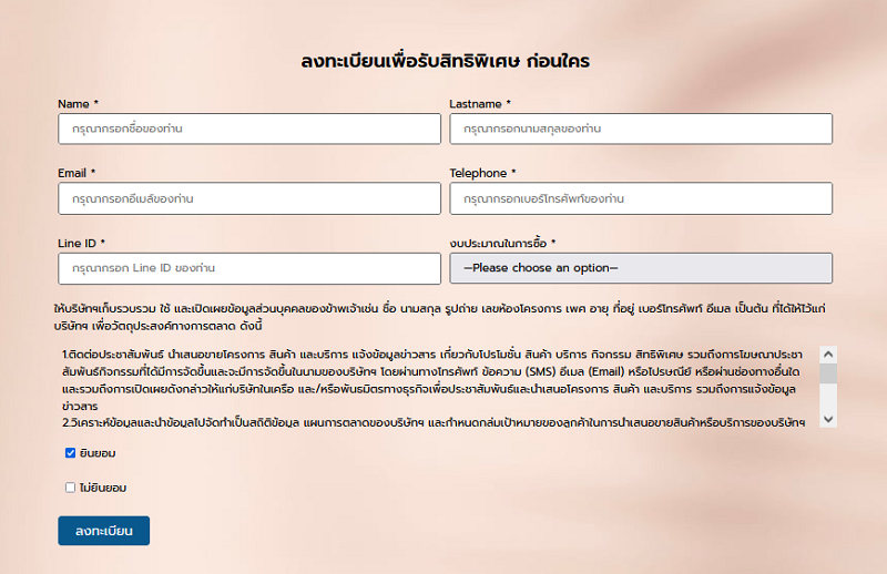 | กำหนดการ | เปิดลงทะเบียนรับข้อมูลโครงการและสิทธิพิเศษ |