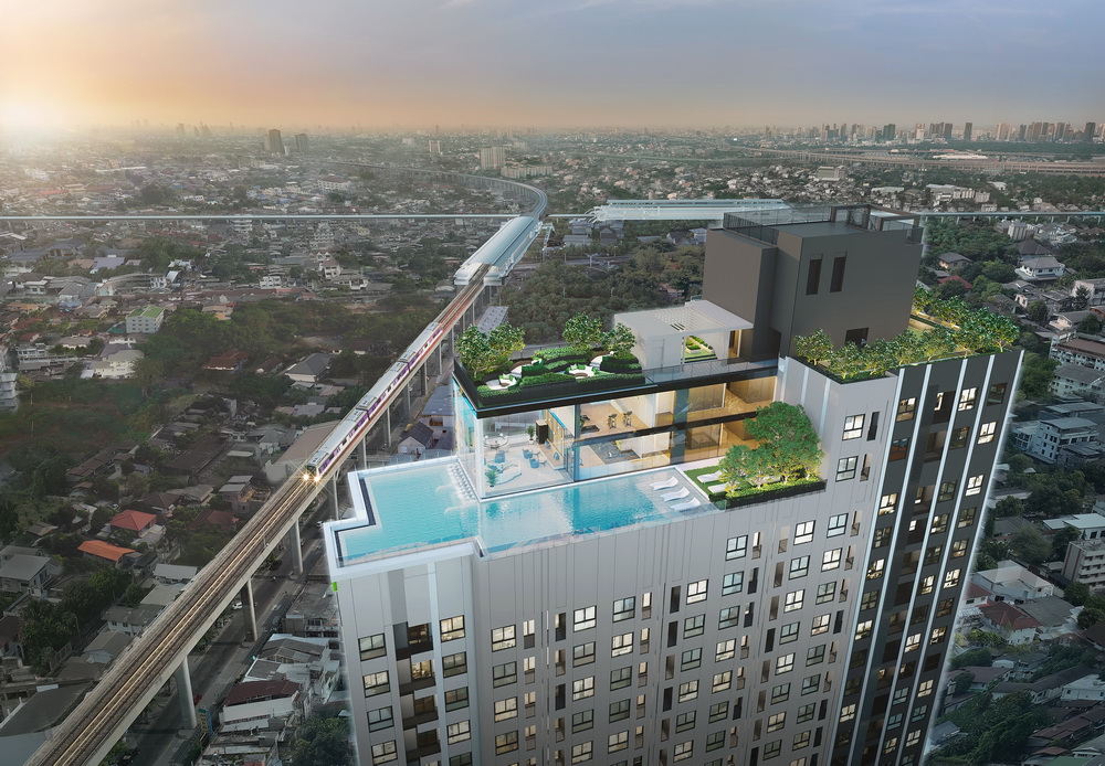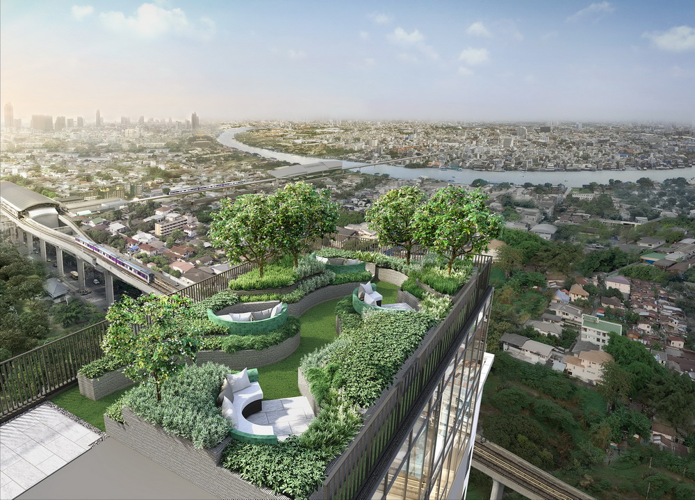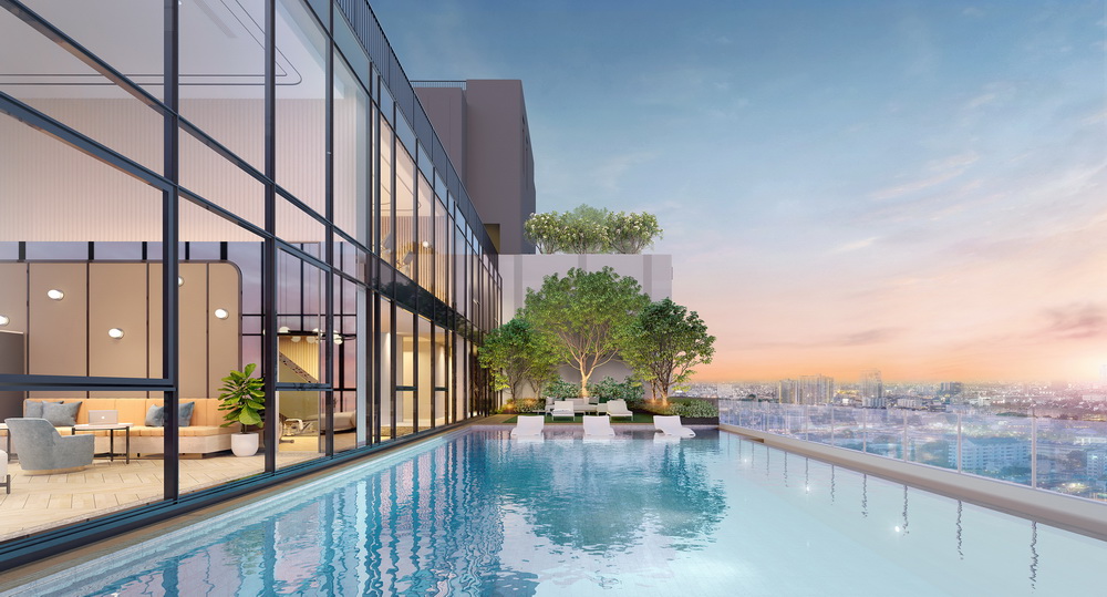 Highlight อีกจุดของส่วนกลางโครงการนี้ คือ จะมี Top Floor Facilities ต่อเนื่องถึง 3 ชั้น จัดฟังก์ชันมาให้หลากหลาย เช่น Lap pool สระว่ายน้ำระบบน้ำเกลือ ขนาดประมาณ 9 x 23 ม., Pool Terrace, Jacuzzi, Sky Lounge, Fitness, Edible Garden, Cloud Garden, Rooftop Lawn โดยแต่ละจุดจะสามารถรับชมวิวเมืองและวิวโค้งแม่น้ำเจ้าพระยาได้อีกด้วยค่ะ ทั้งหมดนี้ในราคาเริ่มต้นเพียง 2.19 ล้านบาท* (มิ.ย. 66)